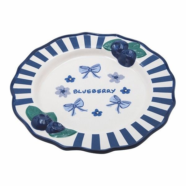 ДЕКОРАТИВНА ЧИНИЯ С ДИЗАЙН С БОРОВИНКИ, КЕРАМИЧНА, БЯЛО-СИНЯ, 25,24,7X2,7 СМ