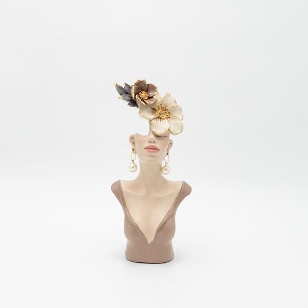 Декорация скулптура жена с цветя бежово - кафяво 11.5x6.5x25.5см