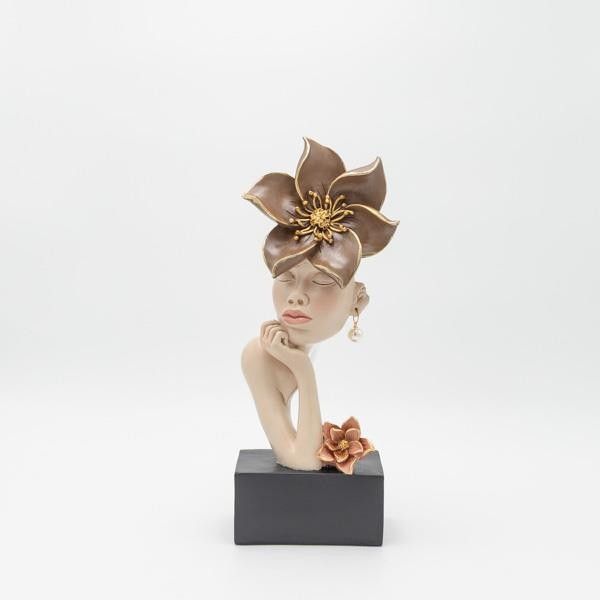 Декорация скулптура жена с цветя черна 13x7.5x32.5см