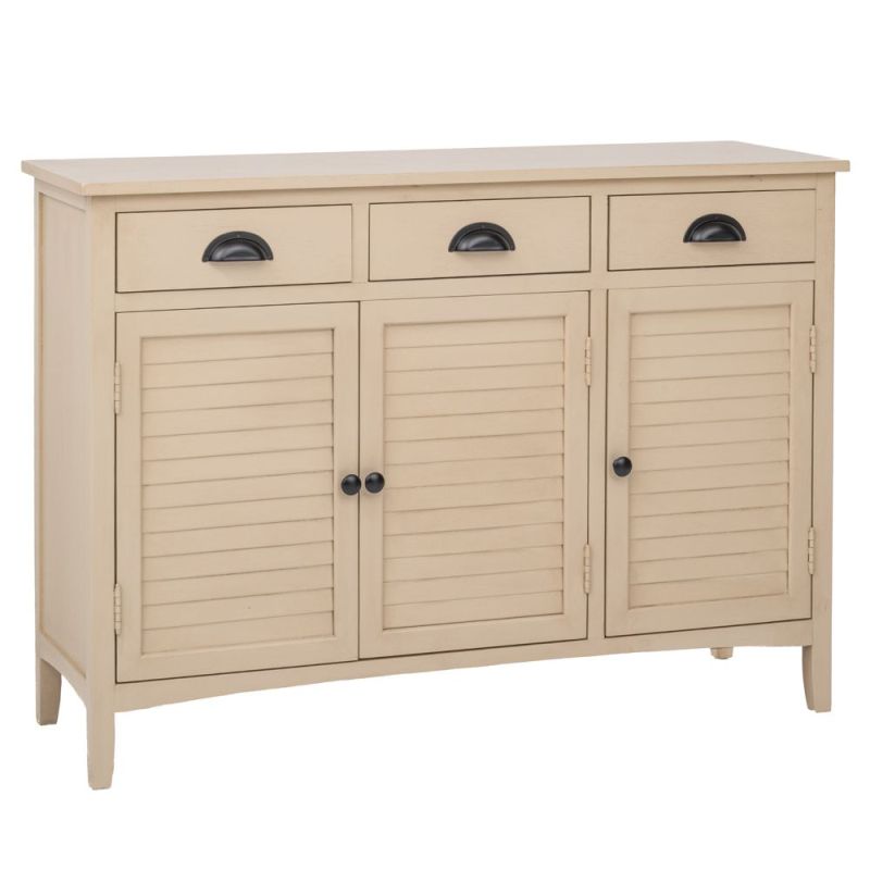 ДЪРВЕН БЮФЕТ В БЕЖОВ ЦВЯТ С 3 ВРАТИ И 3 ЧЕКМЕДЖЕТА 105X35X75СМ