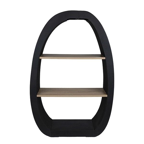 Дървен рафт, натурален - черен 78x30x117см