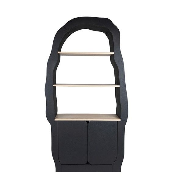 Дървен рафт, натурален - черен 88x30x165см