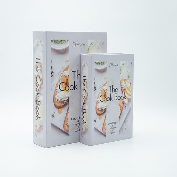 Дървена кутия-книга S/2, бяла - златна, 30x21x7см / 24x16x5см