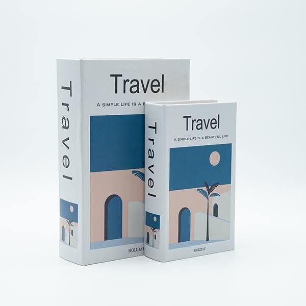 Дървена кутия-книга S/2, бяла - синя, 27x18x7см / 21x13x5см