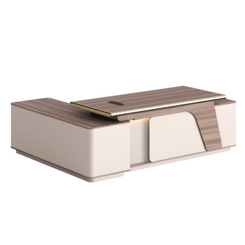 ДЯСНО ЪГЛОВО ОФИС БЮРО SUPERON HM2136R МЕЛАМИН В ЕСТЕСТВЕНО БЕЖОВО-LED ОСВЕТЛЕНИЕ 240X180X76HСМ
