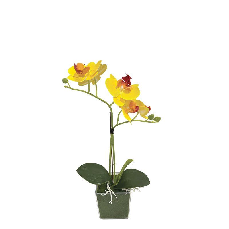 Жълта орхидея Real Touch в саксия (2 клона, 5 цветя) - в30 см 6 бр./кутия