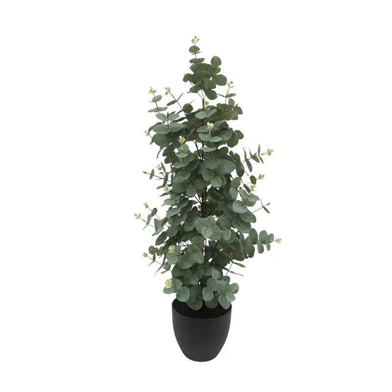 Зелено евкалиптово дърво в пластмасово цвете - в90 см 4/кутия