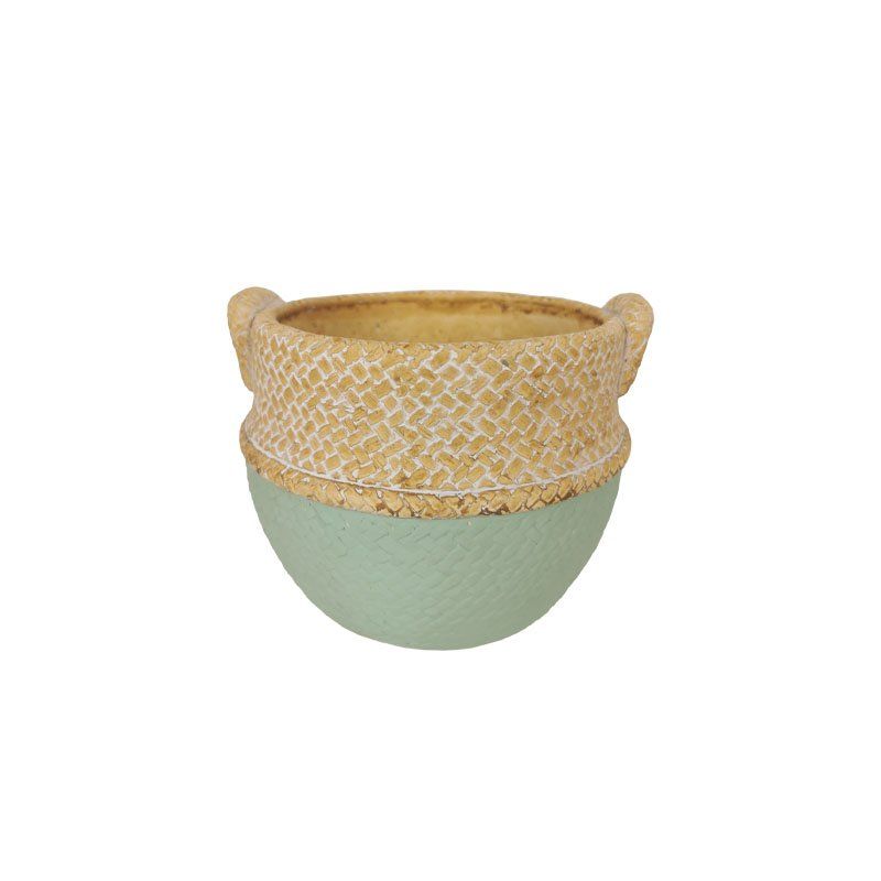 Зелено-бежова циментова саксия, тип кошница с дръжки - 16x15.5x13см 12/12 кутийки