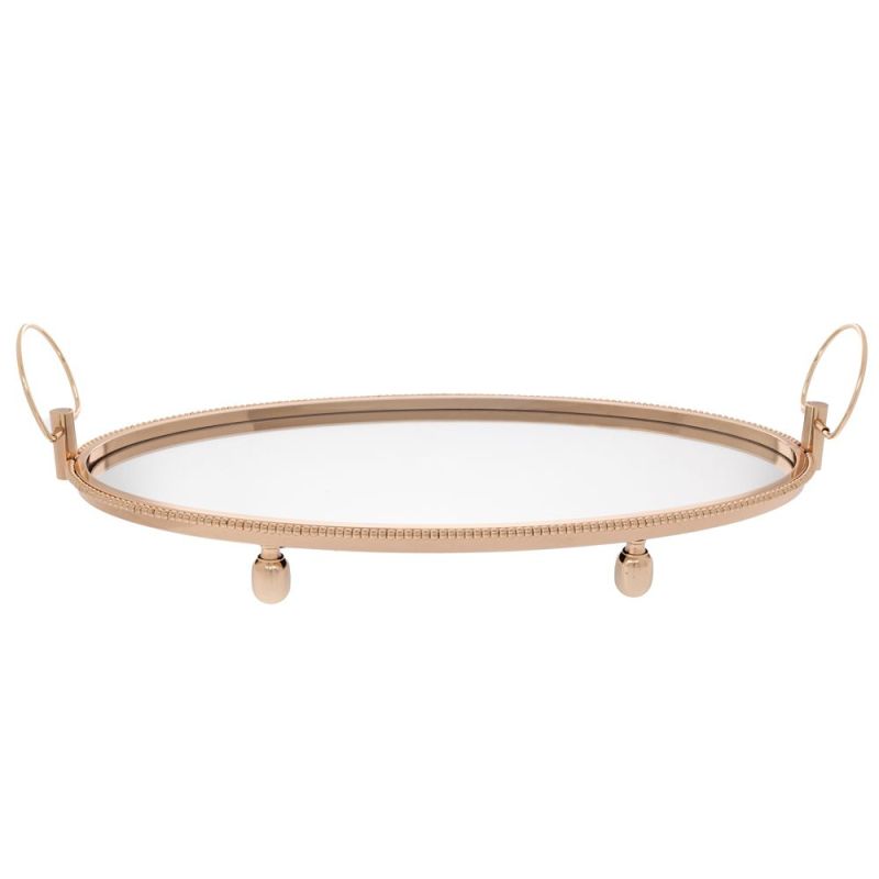 ЗЛАТИСТ МЕТАЛЕН ПОДНОС СЪС СТЪКЛЕНА ПОВЪРХНОСТ 66Х37Х11СМ