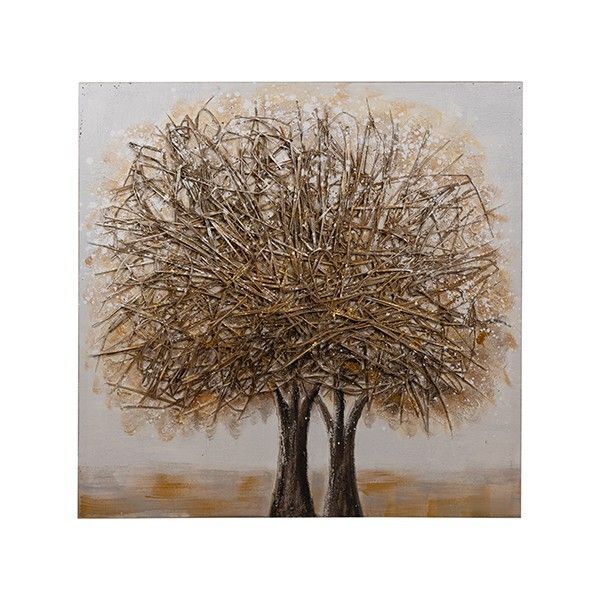 Картина 2 дървета кафяво-бежово-оранжево 82x4.5x82см