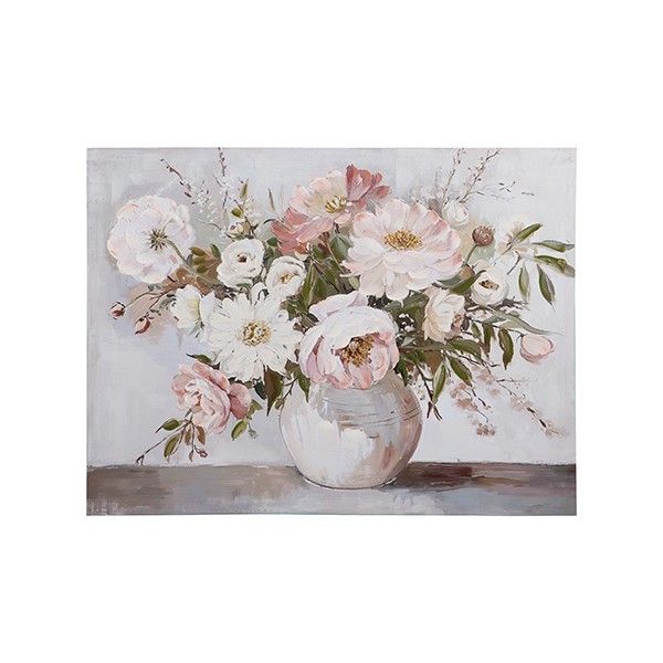 Картина ваза с цветя, платно, бежово-розово, 80x3.5x60см