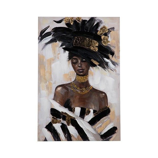 Картина жена, бяло - черно - жълто, 60x3.5x90см