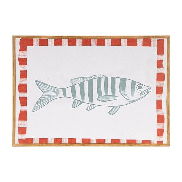 Картина риба бяло - светло синьо - червено 34x2x24см