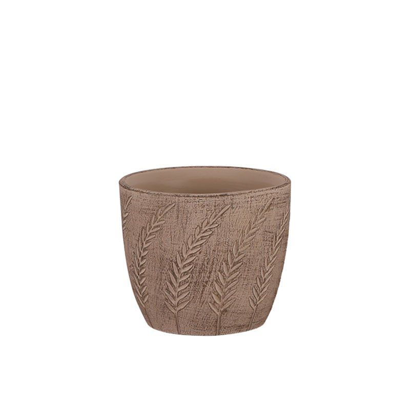 Кафява циментова саксия кръгла релефна клона с листа Φ17x15см - 1/12кутия