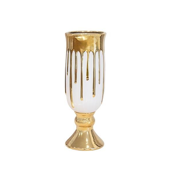 Керамична ваза бяло-златна 12.5*12.5*33.5см