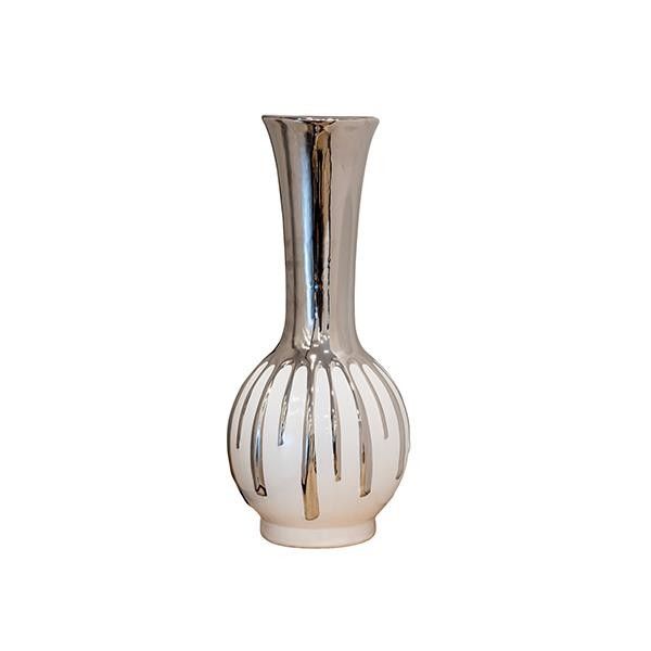 Керамична ваза бяло-сребърна 16.5x16.5x33.5см