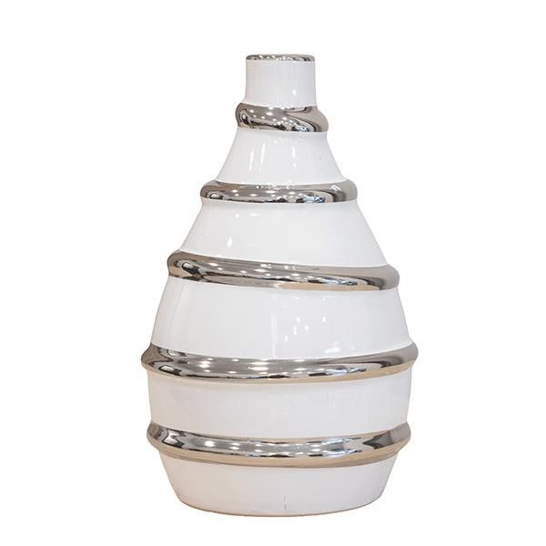 Керамична ваза бяло-сребърна 19.5x19.5x33см