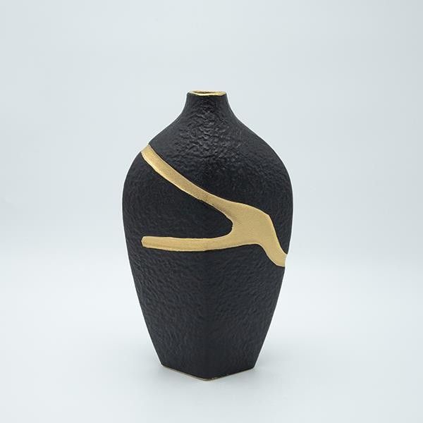 Керамична ваза черно-златна 30x11.5x20.5см