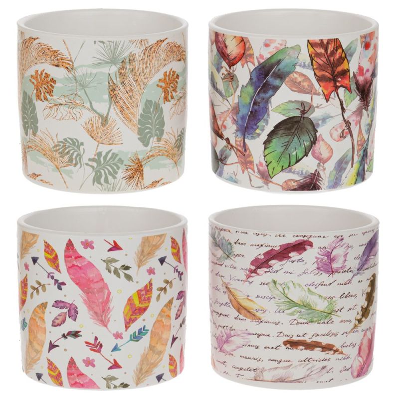 КЕРАМИЧНА САКСИЯ С ПРИНТ НА ЦВЕТНИ ЛИСТА 13X13X12СМ 4 ЦВЯТА