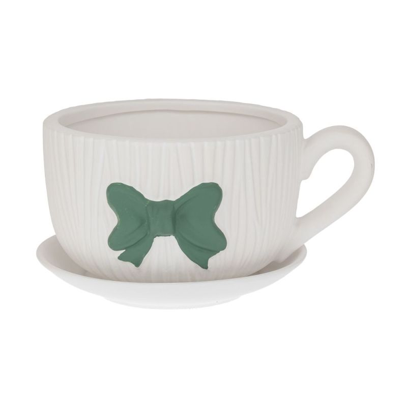 КЕРАМИЧНА ЧАША ЗА ЧАЙ СЪС ЗЕЛЕНА ПАНДЕЛКА 20X15,5X11СМ