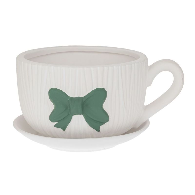 КЕРАМИЧНА ЧАША ЗА ЧАЙ СЪС ЗЕЛЕНА ПАНДЕЛКА 24X19,5X14СМ