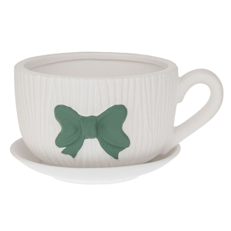 КЕРАМИЧНА ЧАША ЗА ЧАЙ СЪС ЗЕЛЕНА ПАНДЕЛКА 29,5X23X17СМ