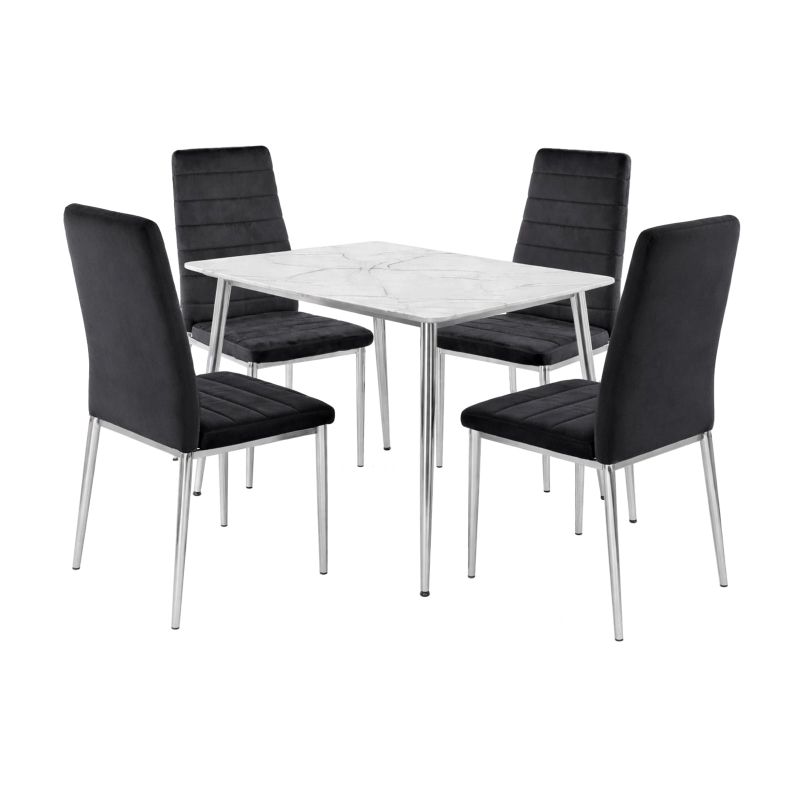 Комплект маса и столове Jetta-oslo: маса + 4 стола, хром - синтерован камък - черен велур
