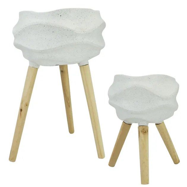 Комплект от 2 керамични саксии с дървени крака - кремав керамични - Д:φ32x58, Ш:φ24x36см 6 бр./кутия