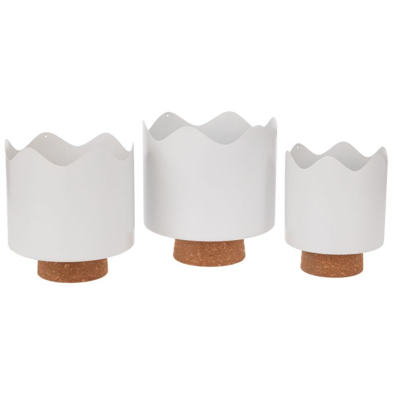 КОМПЛЕКТ ОТ 3 БЕЛИ МЕТАЛНИ САКСИИ С ФИЛЦОВА ОСНОВА Д19X21 Д17X19 Д14X17 СМ