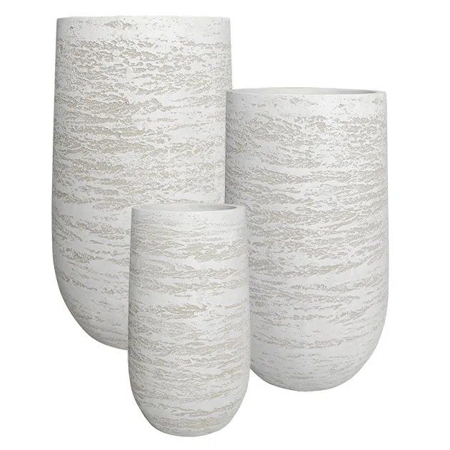 Комплект саксии от влакниста глина/3 високи кръгли бяло-кремави - 1/кутия