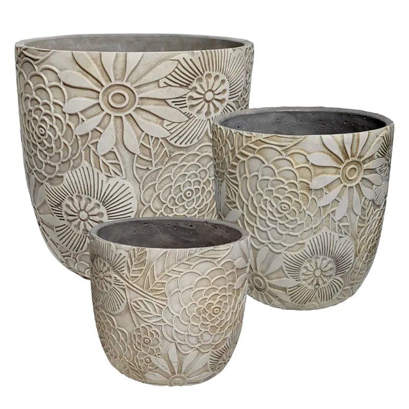 Комплект саксии/3 кръгли кафяви цветя мотибо - Д:φ30.5x31.5, М:φ25x26, Ш:φ20x20.5см 1/кутия