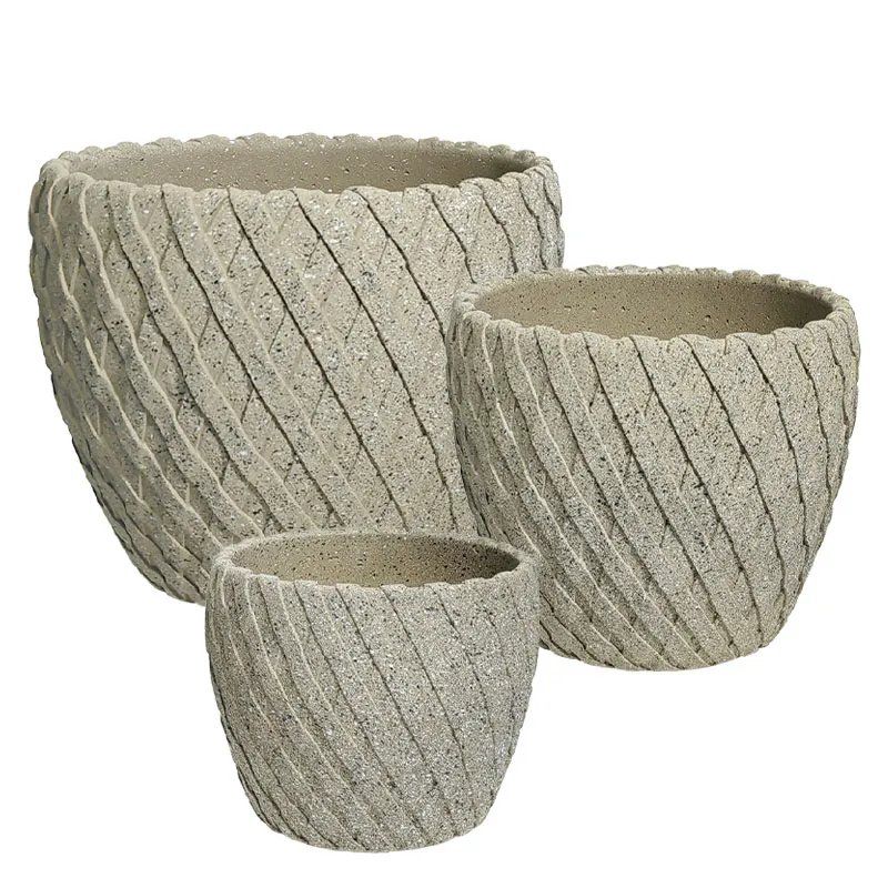 Комплект саксии/3 кръгли саксии с мозайка в бежов цвет, мрежести X - Д:φ29x25, М:φ25x21, Ш:φ20x17см 1/кутия