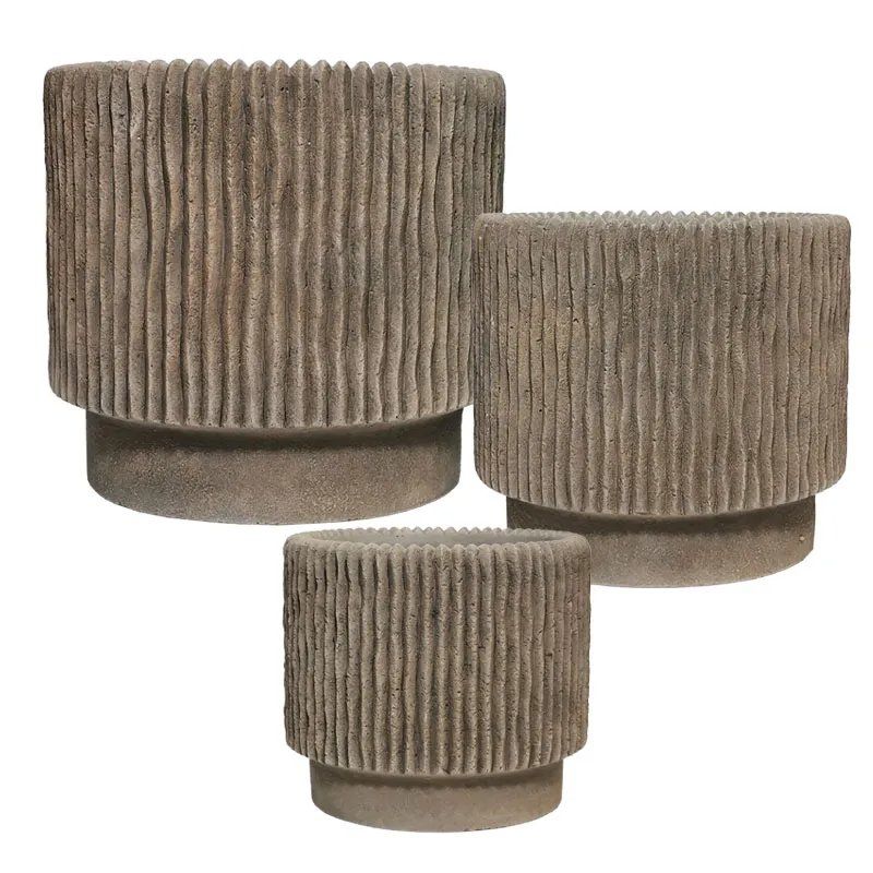Комплект саксии/3 кръгли саксии със светло кафяви зъбници - Д:φ30.5x30.5, М:φ25x25, Ш:φ20x20см 1/кутия
