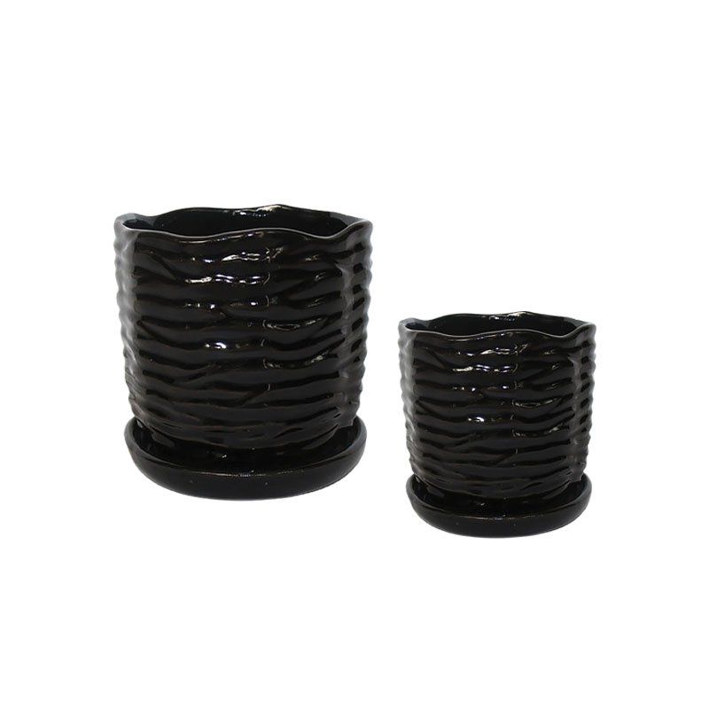 Комплект/2 саксия от земя с ленти и чинийки - размер: Φ13.5x14.5, м: Φ19x18.5 см 4/kib