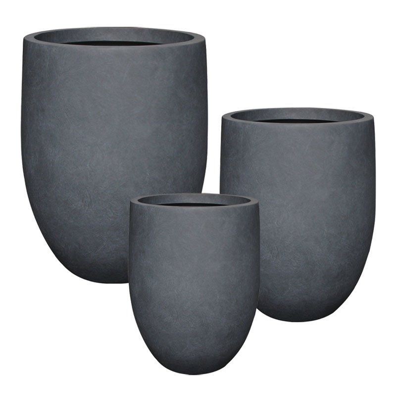 Комплект/3 цилиндрични леки циментово-карбонови саксии - S:φ43x55, M:φ55x69, L:φ70x81см 1/кутия