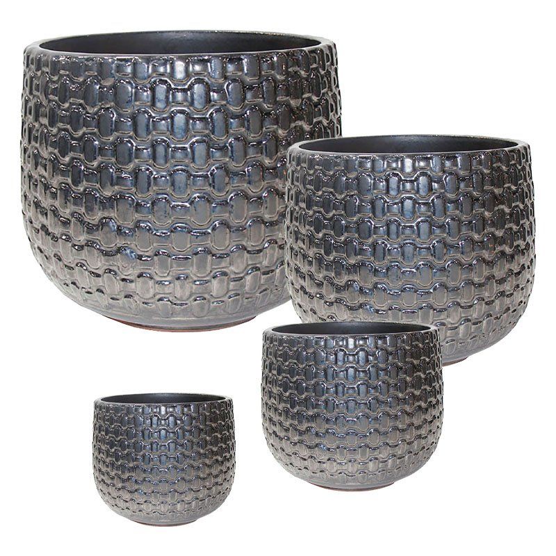 Комплект/4 сиви кръгли саксии от люспеста глина - S:φ23x19, M:φ32x25.5, L:φ38x32, Xl:φ48x38.5 см 30/бр.