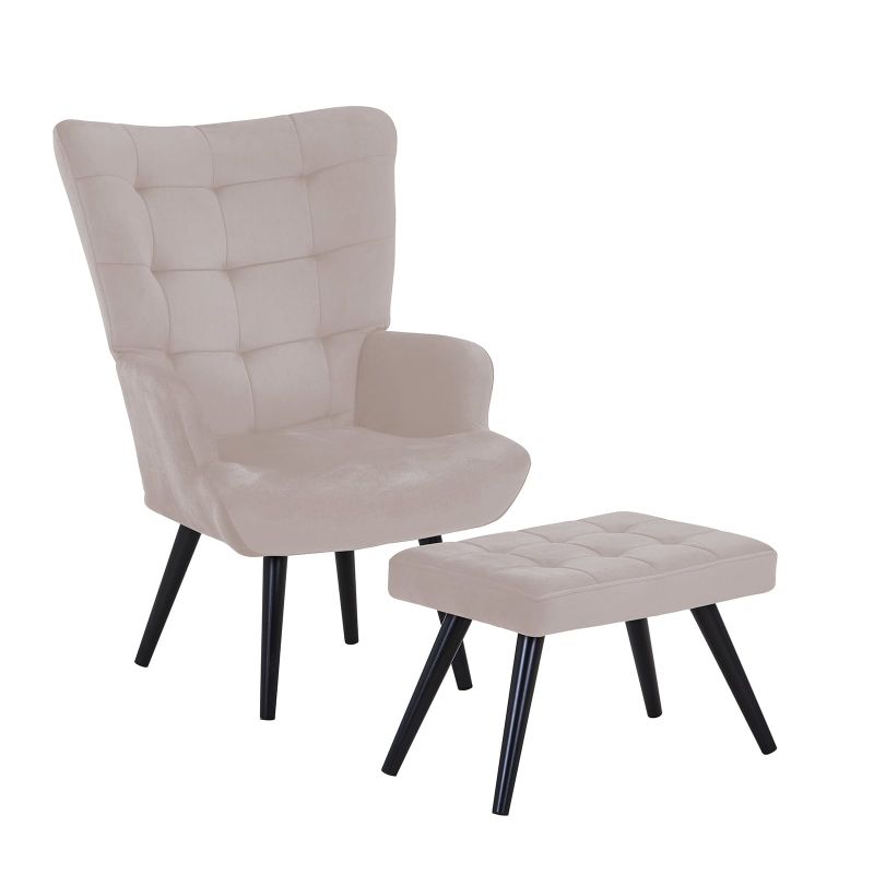 Кресло Lobby - Bergerac с табуретка - табуретка за крака, черен метал, бежов велуренен плат