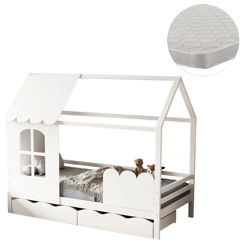 Легло с матрак Domer Hm21319 борова дървесина в бяло - матрак 90x190см
