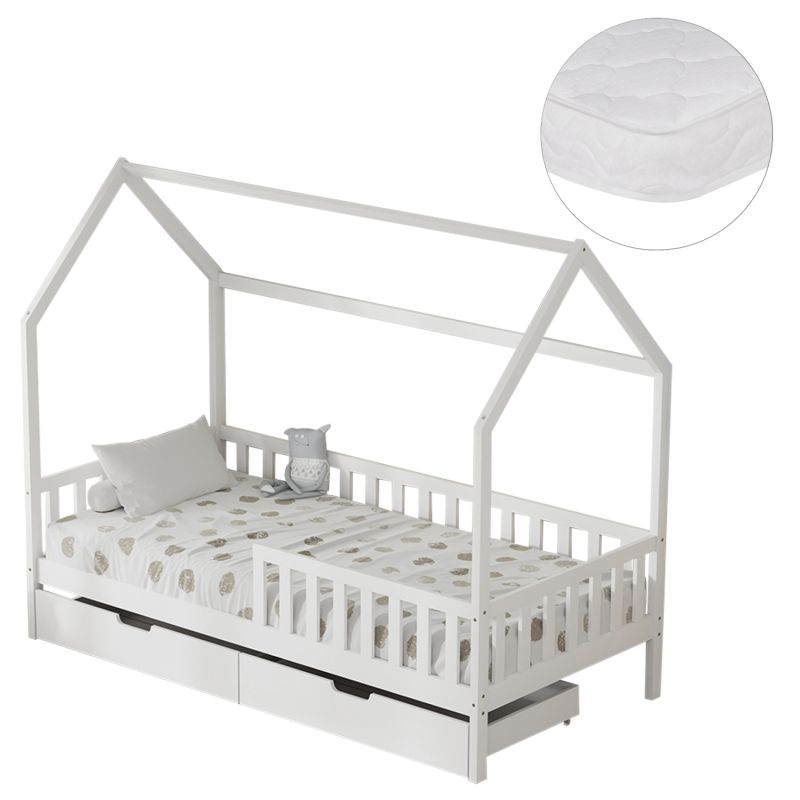 Легло с чекмеджета Phyllis Hm21324.01 борова дървесина в бяло - с матрак 90x190см