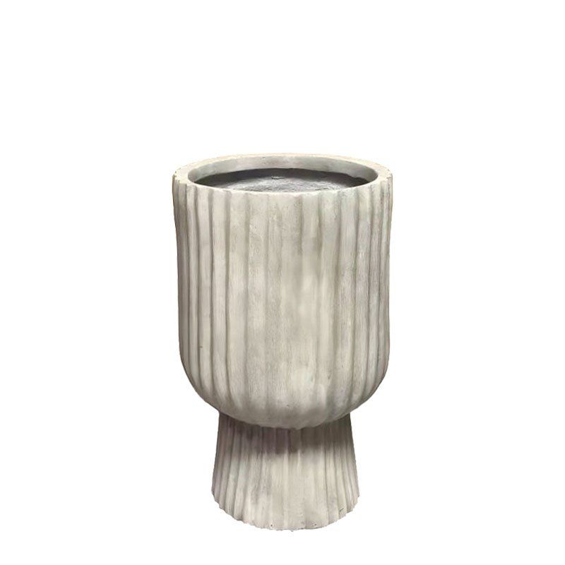 Лека циментова бежова цилиндрична саксия с вертикални линии и средна основа - Φ25x40см