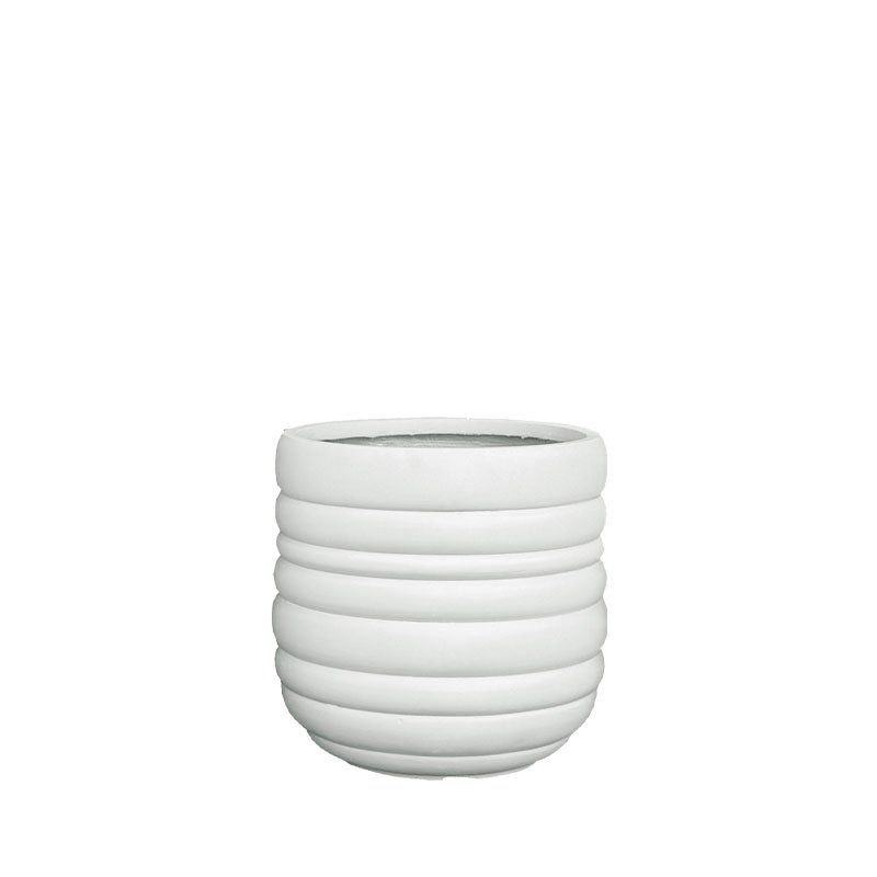 Малка лека циментова саксия, бяла, кръгла с линии - Φ30x28см