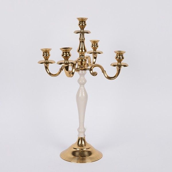 Метален свещник с 3 позиции, златист - екрю 34x16x51см