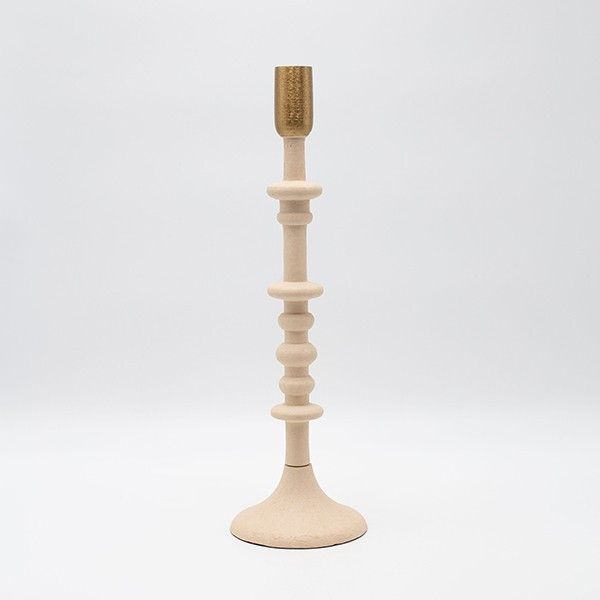 Метален свещник, бежово-златен 10.5x10.5x35.5см