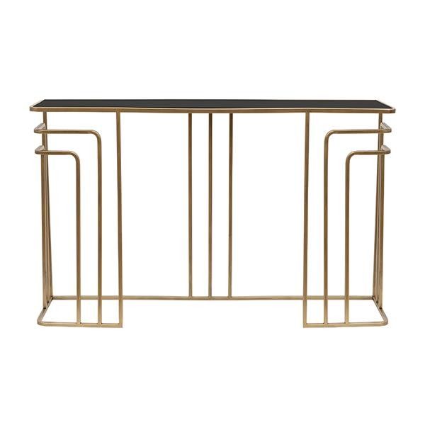 Метална конзола със стъклен плот, златиста, 120x32x75см