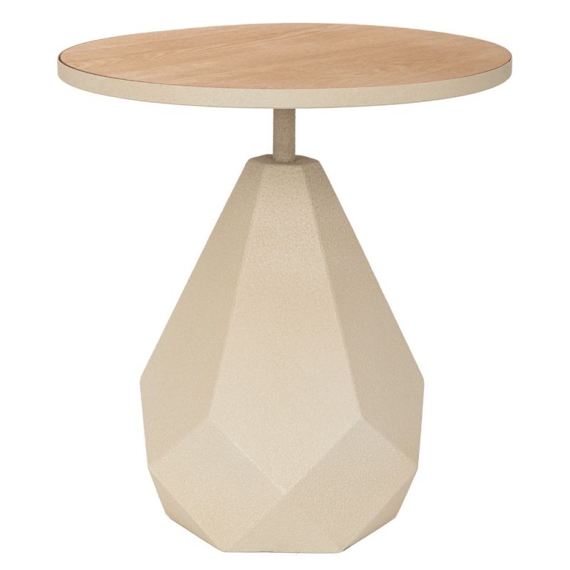 МЕТАЛНА ПОМОЩНА МАСА В КРЕМАВ ЦВЯТ С ДЪРВЕНА ПОВЪРХНОСТ 45X45X49СМ