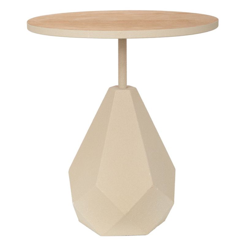 МЕТАЛНА ПОМОЩНА МАСА В КРЕМАВ ЦВЯТ С ДЪРВЕНА ПОВЪРХНОСТ 50X50X56СМ