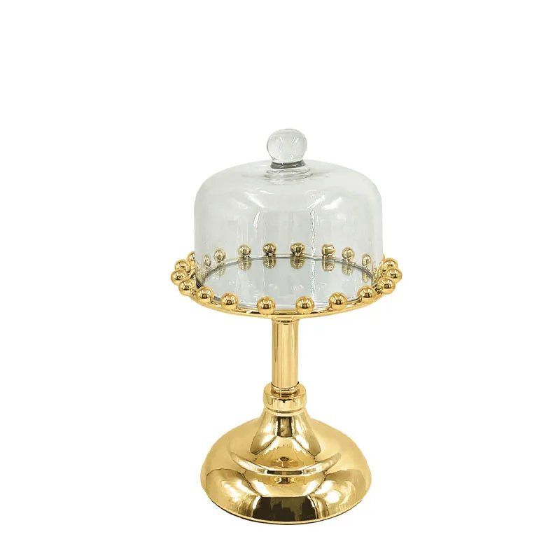МЕТАЛНА ФОРМА ЗА ТОРТА, ЗЛАТИСТА/БЯЛА, СЪС СТЪКЛЕНИ ТОПКИ, ВИСОКА - Φ15X23СМ, 24/КУТИЯ