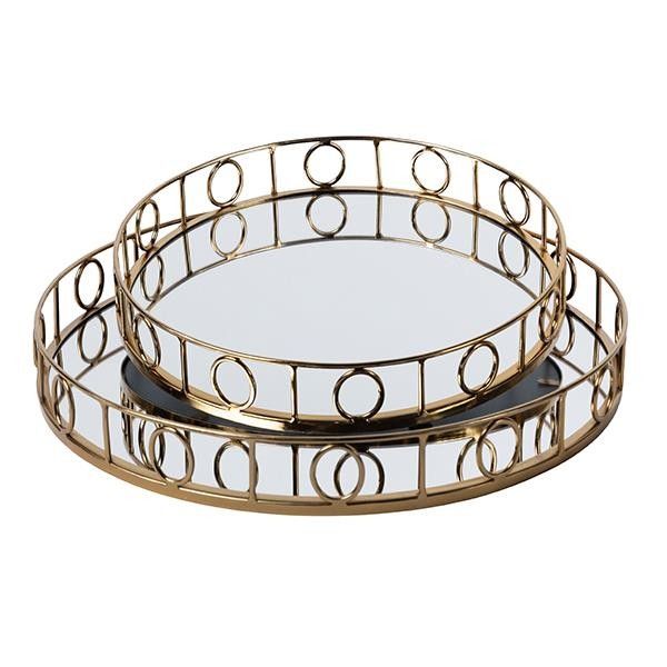 МЕТАЛНИ ПОДНОСИ S/2 - ОГЛЕДАЛНО ЗЛАТИСТА 39X5СМ / 30.5X5СМ