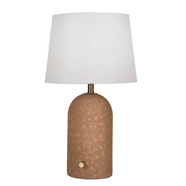 Настолна лампа с бял платнен абажур, керамична, кафява, 28x49см