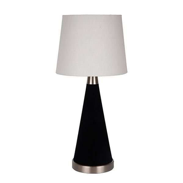 Настолна лампа с бял платнен абажур, металик, черно-златна, 24x50см